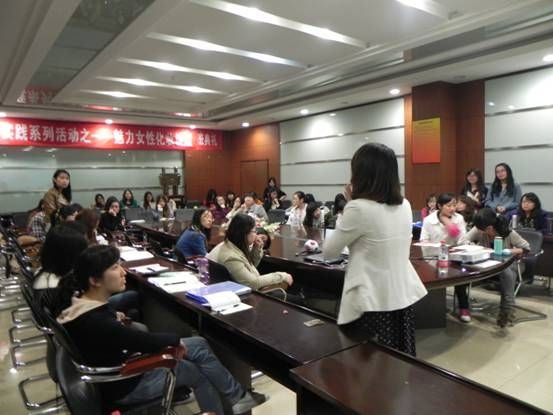 | 在现代文明高度普及的今天,一个人的仪表形态对其形象塑造至关重要。无论是找工作还是参加比赛,一个好的仪表,都会为你加分不少。为了帮助会计学院研究生提高自我形象,更好地参与职场竞争,会计学院研究生会于4月1号晚上在文泉楼401会议室举办了“會萃堂实践系列活动之——魅力女性化妆讲座”,讲座邀请在护肤、调理和化妆方面非常专业的熊娟老师作为主讲老师,为同学们带来了一场有价值、生动且内容丰富的盛宴。 讲座开始之前,会议室已经坐满了慕名而来的学生,几乎每位学生都带了纸和笔,静静地等待着熊娟老师的到来。终于,在同学们的热切期盼下,熊娟老师提着一个化妆包优雅的走进了会议室。紧接着,熊娟老师开始了她的讲座。熊娟老师主要从护肤、调理和化妆三个板块进行详细讲授。首先,在第一个美容护肤板块,熊老师分别从四种不同类型皮肤的护理方法、如何挑选护肤产品、常见病理皮肤的保养方法三个方面进行展开。四种皮肤分别是干性皮肤、油性皮肤、混合性皮肤及敏感性皮肤,老师对不同的皮肤类型给出了不同的保养建议。同时,老师还针对长痘、长斑及眼部问题进行了病理解释并给出了一些改善意见。接着,在板块二中,熊娟老师从中药调理入手,告诉我们应如何美容护肤、如何调理肠胃、如何治疗头痛失眠、如果进行减肥瘦身,同时老师还耐心地回答了同学们提出的一些问题。最后,在板块三的职业化妆中,熊娟老师现场为一位同学化职业妆并向大家讲解化妆知识,让同学们更进一步了解如何化职业妆。 讲座在同学们的恋恋不舍中一直持续到晚上九点半才结束,通过熊娟老师的耐心讲解,同学们进一步了解护肤、调理及化妆知识,并清楚地认识到调理是保持好身体、好皮肤、好形象的最重要的方法,从而有动力保持健康的饮食和作息,同时这次讲座也教会了大家化职业妆,为以后找工作时塑造良好形象奠定了坚实的基础。