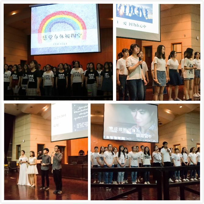 其中CPAC1501、国会1501、会计1501、注会1501分别带来四首合唱——“感觉身体被掏空”、“爱,因为在心中”、“情歌王”、“心愿”。或歌词新颖、创意十足,或悠扬婉约,或真挚动人,给观众们带来了一场听觉盛宴。