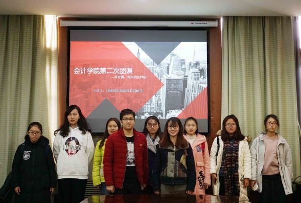 而在12月2日早上9:30,会计学院第二次团课暨入团积极分子学习交流会在文泉306教室顺利召开,主讲人为团委组织部部长赵丽莹同学。