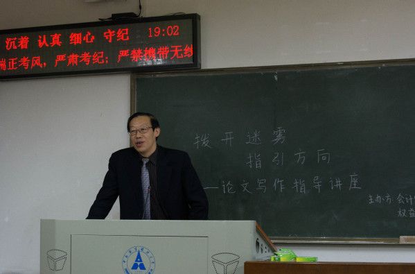 12月21日晚7点,由会计学院学生会主办的“拨开迷雾,指引方向”——论文写作指导讲座在文澜108教室成功举行。此次讲座以论文指导为主题,旨在为大家普及论文写作的相关知识。讲座邀请到了会计学院汤湘希教授担任主讲人,帮助同学们解决在论文写作上遇到的问题和困难。参会同学热情高涨,活动现场,座无虚席。