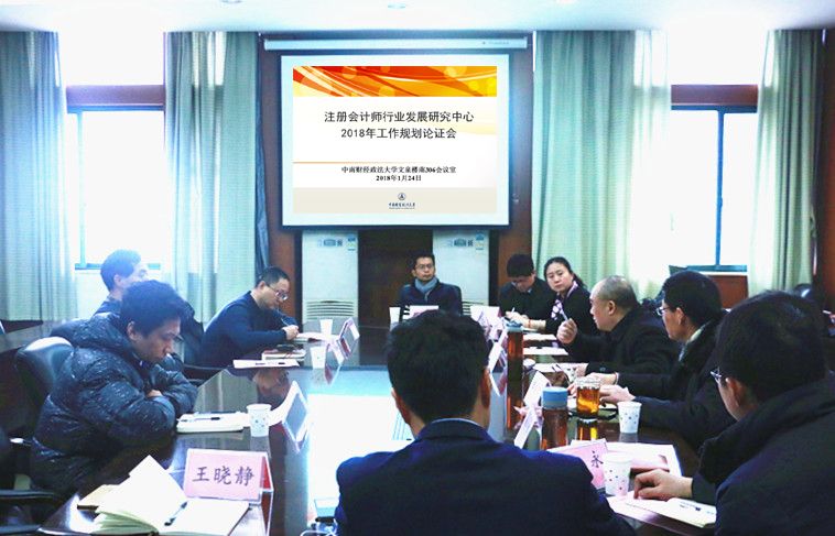 (通讯员 王晓静)2018年1月24日上午,“注册会计师行业发展研究中心2018年工作规划论证会”在文泉楼南306会议室举行。注册会计师行业发展研究中心主任张龙平教授、会计学院院长张敦力教授,湖北省财政厅注册会计师秘书处尹祚田处长、韩沧海副处长、考试培训部梁广春主任,会计学院培训中心主任王清刚、党政办公室主任徐会超、审计系主任陈波、副主任张胜,会计系副主任柳光强以及李璐教授、史永副教授等参加会议。会议由党政办公室主任徐会超主持。