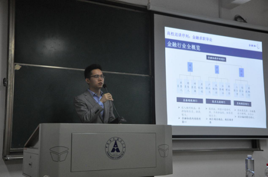 4月15日晚,“研职有道”系列活动第33期之对话职场在文添楼112教室举行。此次活动由工商管理学院研究生会主办,会计学院研究生会和统计与数学学院研究生会协办。活动邀请了三位现就职于金融行业的学长,通过讲述自身的求职和工作经验,介绍行业概况及实习、求职的相关建议,近百名研究生到场参加聆听讲座。