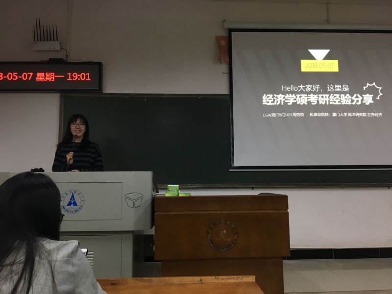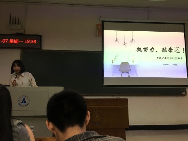 5月7日晚七点,由会计学院2015级年级团总支学生会主办的会计学院2015级考研专场经验分享会在南湖校区文澜楼108教室举行,本次分享会特别邀请了会计学院14级的周恺悦、刘路遥、彭吉喆、邹汝康四位优秀学子与2015级同学分享考研经验与心得体会。