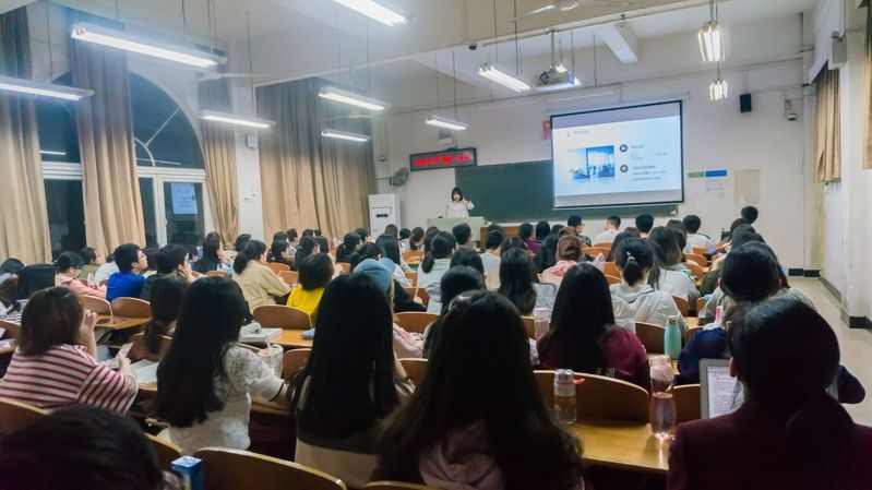伊始,成功考取厦门大学的周恺悦师姐向在座同学们分享了她的考研经验。她首先介绍了院校及专业的选择,可以从学术兴趣、个人学习能力等维度综合考虑。其次,为同学们在考研的不同阶段,如何把握关键点,调整心态等给出了自己宝贵的建议。最后,她也就报考辅导班、是否参加校招等大家提出的问题,答疑解惑。