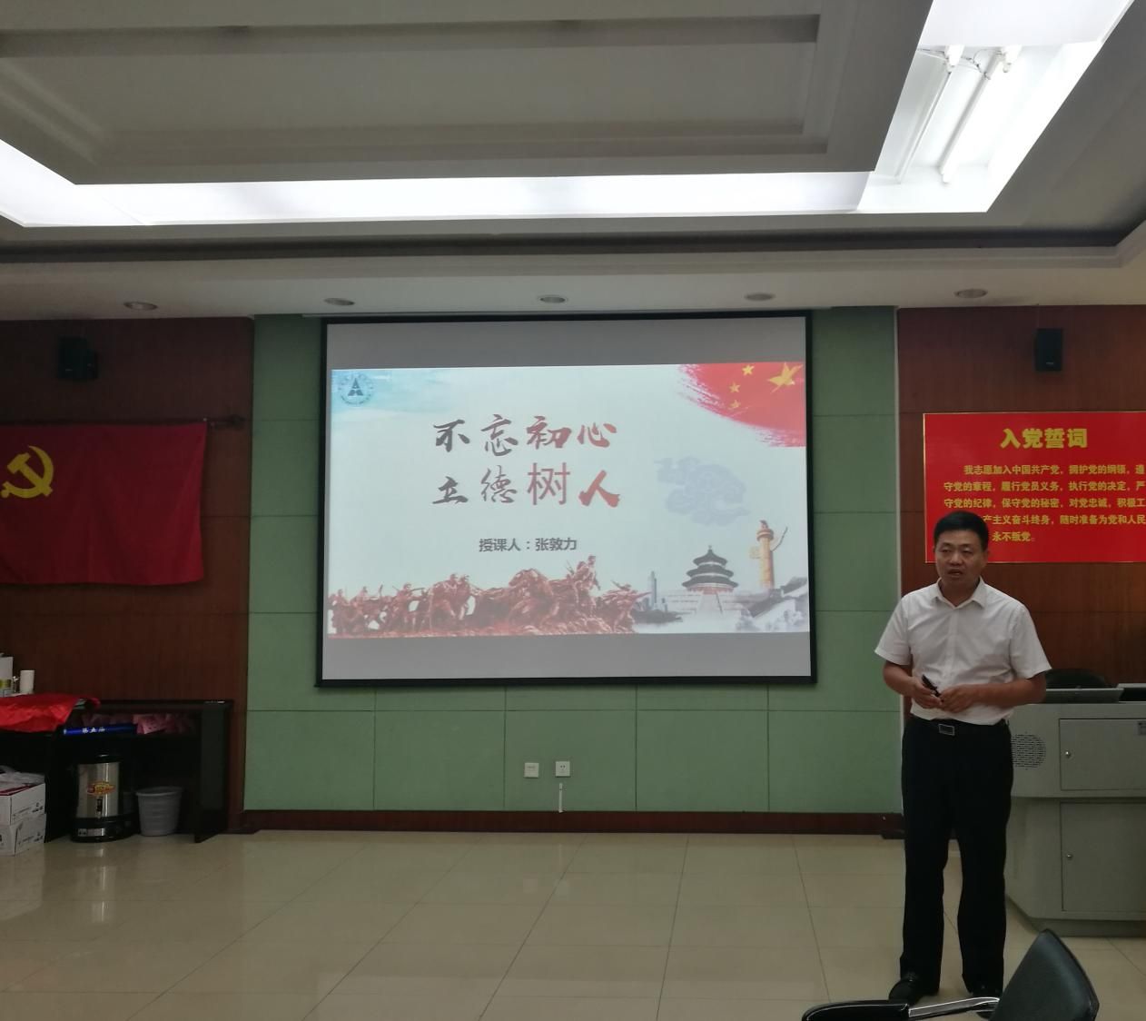 院党委副书记、院长张敦力为与会师生讲授了“不忘初心 立德树人”主题党课。张敦力院长从学习党史,坚定信念,不忘党员初心;立德树人,培养人才,不忘教师初心;立足岗位,敢于作为,不忘会院初心,这三个“初心”入手,理论联系实际,带领大家深入学习了习近平新时代中国特色社会主义思想、党的十九大精神和全国思想政治工作会议精神。