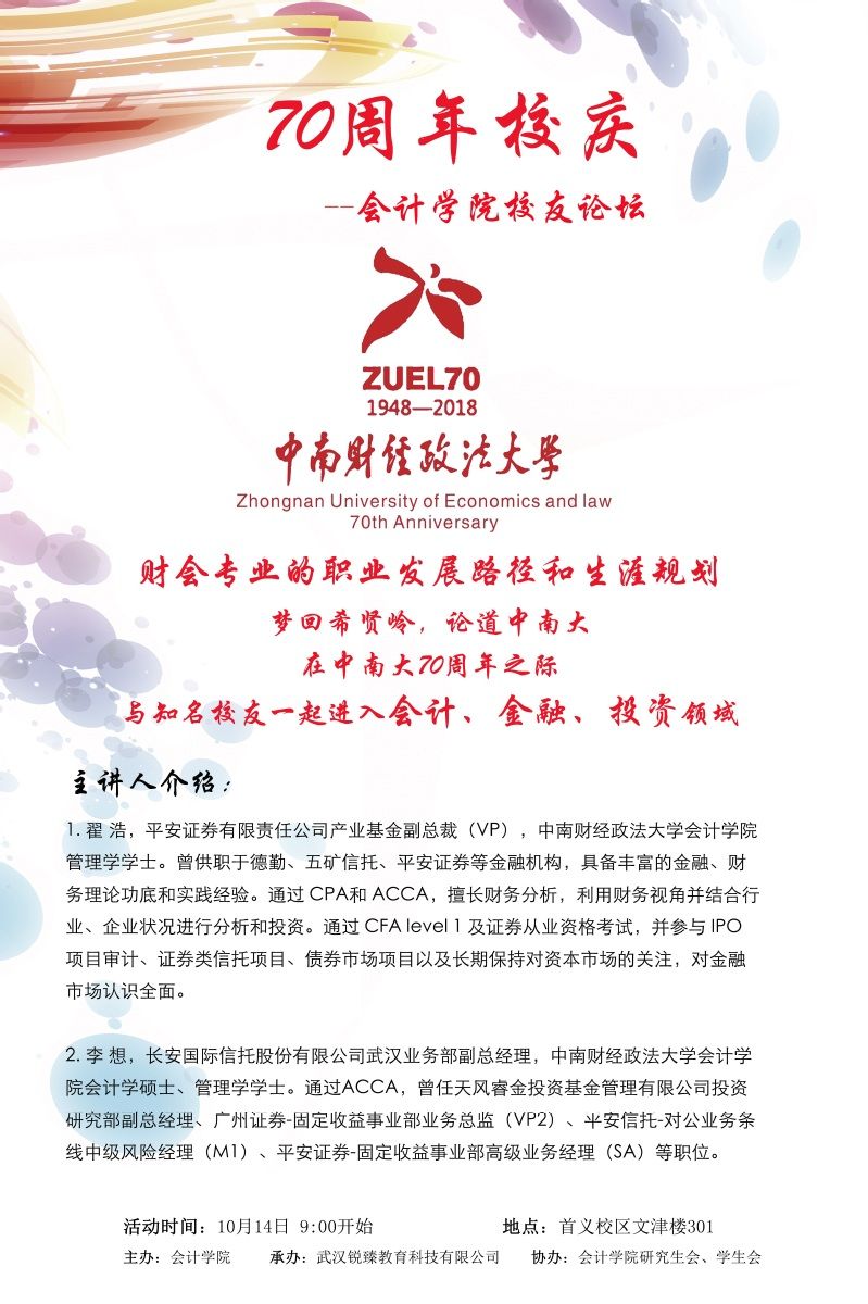 70周年校庆之会计学院校友论坛-财会专业的职业发展路径和生涯规划