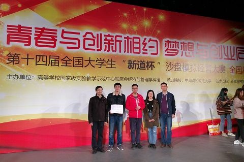 2018年11月11日,第十四届全国大学生“新道杯”沙盘模拟经营大赛本科组全国总决赛在我校南湖校区艺体中心圆满落下帷幕。本次比赛由教育部下设的高等学校国家级实验教学示范中心联席会主办、中南财经政法大学承办、新道科技股份有限公司提供技术支持,旨在通过创业设计和模拟企业管理信息化经营的形式,培养创新型复合型应用人才,并推动经管类各专业的教学改革。