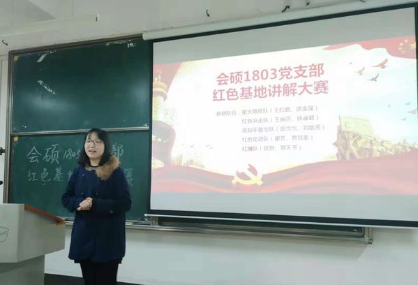 11月23日,全体党员在文添楼409举办了红色基地讲解大赛。全体党员分为五组,各组都为自己起了响亮有文雅、有气势的队名,分别是星火燎原队、红色突击队、遥知不是雪队、红色足迹队以及红鹰队,支部书记刘路遥同志主持了该场比赛。