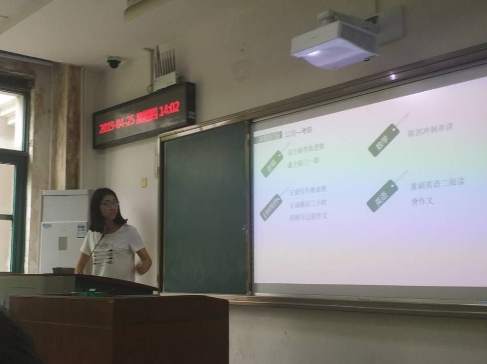 2019年4月26日12:00-13:00、13:30-15:30,会计学院16级分别于文泰楼111、文泰楼115举办了“本校场”、“外校场”考研经验交流分享会,共邀请七名15级成功考取硕士研究生的师兄师姐分享了经验,分享会由2016级辅导员张亚星老师主持,教室内座无虚席,场面火爆。