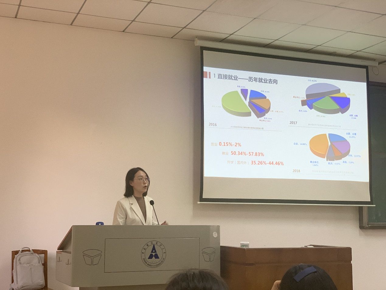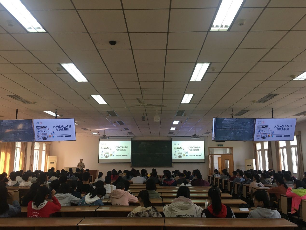 2019年10月17日下午,会计学院2019级在文泽303举行了两场新生职业规划讲座,校就业指导服务中心兰玉娟、郭婉钰两位老师应邀为同学们讲解大学生学业规划与职业发展。