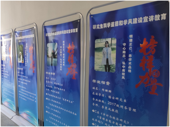 2019年11月18日至21日,由研究生院、党委研究生工作部和校研究生会主办,会计学院承办的“科学道德和学风建设宣讲教育”活动分别在文泉楼、十食堂排球场前和文添楼105成功举办。本次活动以线上与线下方式结合,旨在引导我院研究生遵守学术规范、坚守学术诚信、完善学术人格、维护学术尊严。