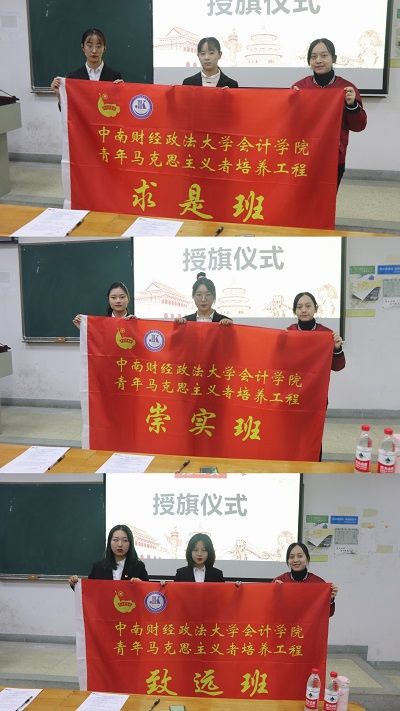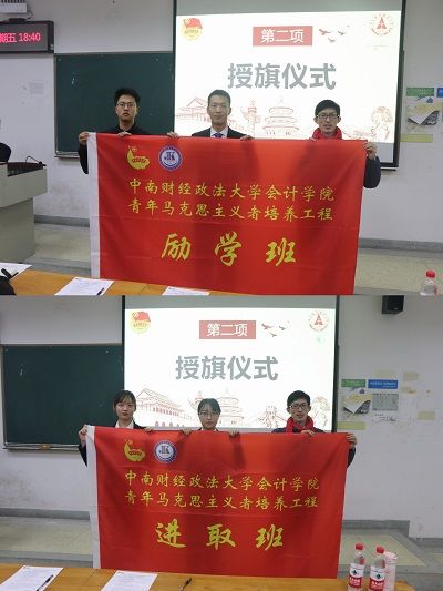 大会主要包括七项内容。第一项,奏唱共青团团歌。接下来会计学院团委书记张昭妍老师、副书记陈俊华老师分别为第十三期青马班“求是班”、“崇实班”、“致远班”、“励学班”、“进取班”授旗。