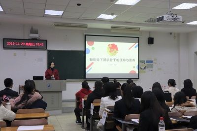 授旗仪式结束后,两位老师分别为我院团学骨干讲团课。张昭妍老师为大家讲授“新形势下团学骨干的使命与素养”。张老师首先给大家明确了新时期团学骨干应具有的使命是什么。随后,介绍了我院团学组织现有的职能分布,以及如何处理成员减少与提高工作效率之间的矛盾。最后通过具体的事例,张老师着重强调了作为团学骨干应具备的政治性、专业性的能力要求,尽量避免在工作过程中出现纰漏。
