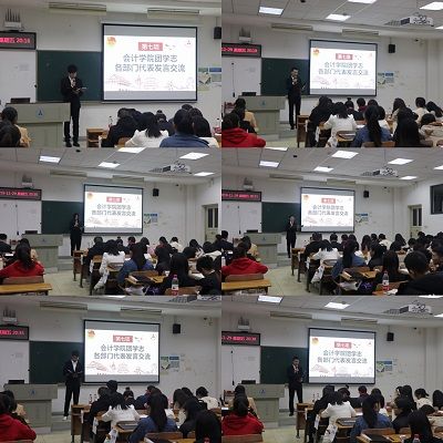 最后,院团委、学生会、志愿者协会各个部门代表上台发言。各位骨干代表向老师和各位学生干部们汇报了上学期的工作成果,同时立足实际情况,提出了各部门对推动学院团学工作的建议。