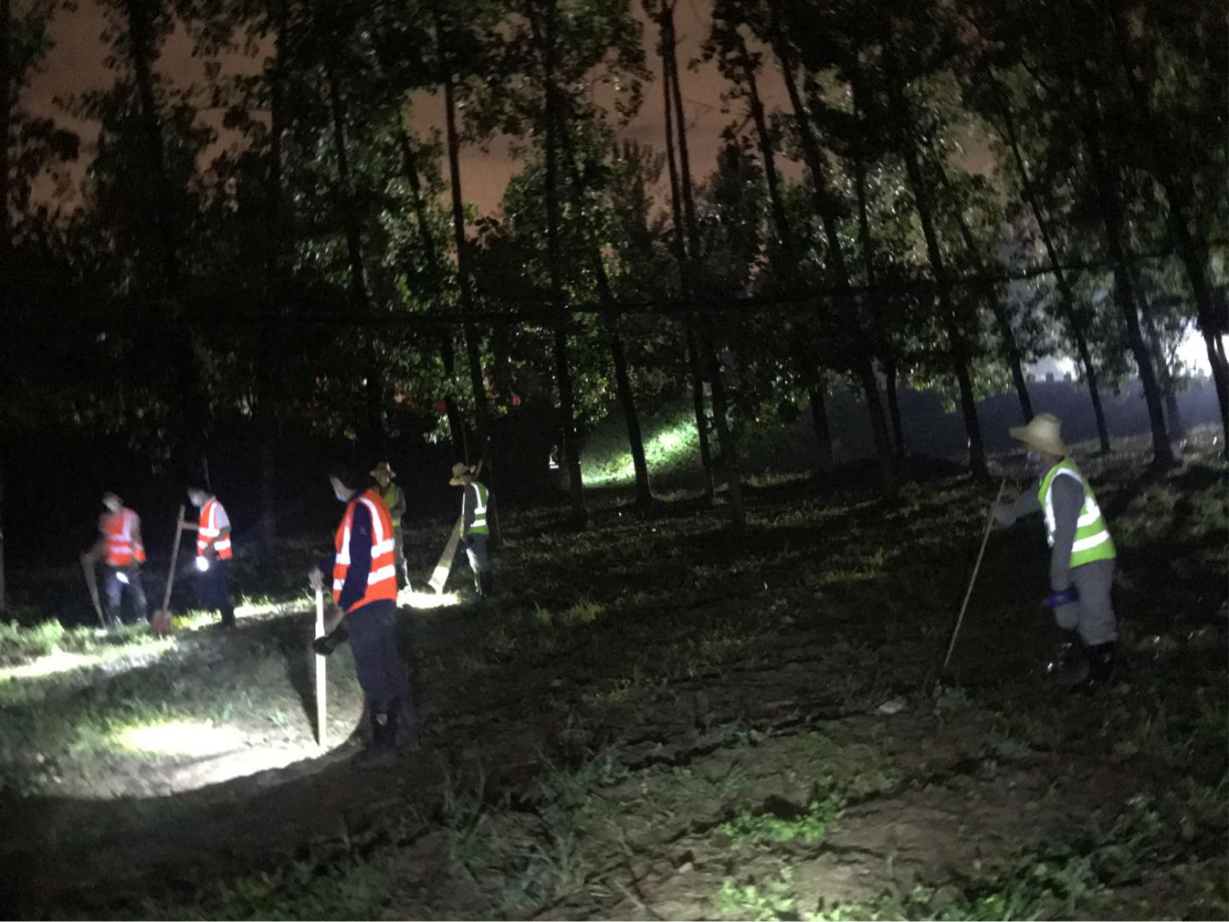 防汛队员分组轮换,24小时不间断巡堤查险,全力以赴,不畏艰苦。