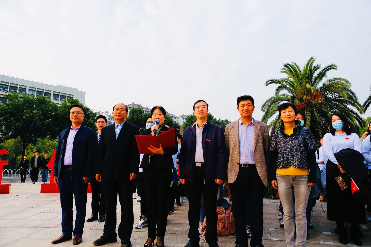 (通讯员 张懿明) 秋阳杲杲,山河无恙。10月26日清晨, “点赞武汉,致敬英雄,英雄武汉,感恩祖国”会计学院主题升旗仪式在中原楼广场举行。校党委常委、副校长姚莉,校学工部部长余小朋,会计学院院长张敦力,党委书记殷修林,副书记王延,副书记、行政副院长、纪委书记徐会超,会计学院全体辅导员及八百余名学生代表参加了本次升旗仪式。会计学院135名学生手持鲜花,在中原楼台阶摆成爱心造型。“共和国勋章”钟南山和“人民英雄”张伯礼、张定宇和陈薇等四位国家荣誉获得者巨幅画像高高耸立。