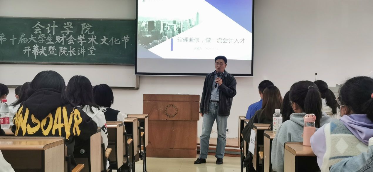 为时一个半小时的院长讲堂,张院长通过深入浅出、生动有趣的讲述,从硬功夫从哪里来,如何培养软实力两个方面,为同学们指明“做一流会计人才”的方向,赢得了同学们的阵阵掌声。相信在院长的谆谆教诲中,同学们对自己的大学发展有了更深刻的认识,也更坚定了大家做软硬兼修的新时代财会大学生的信心。(学生记者 张蓝心)