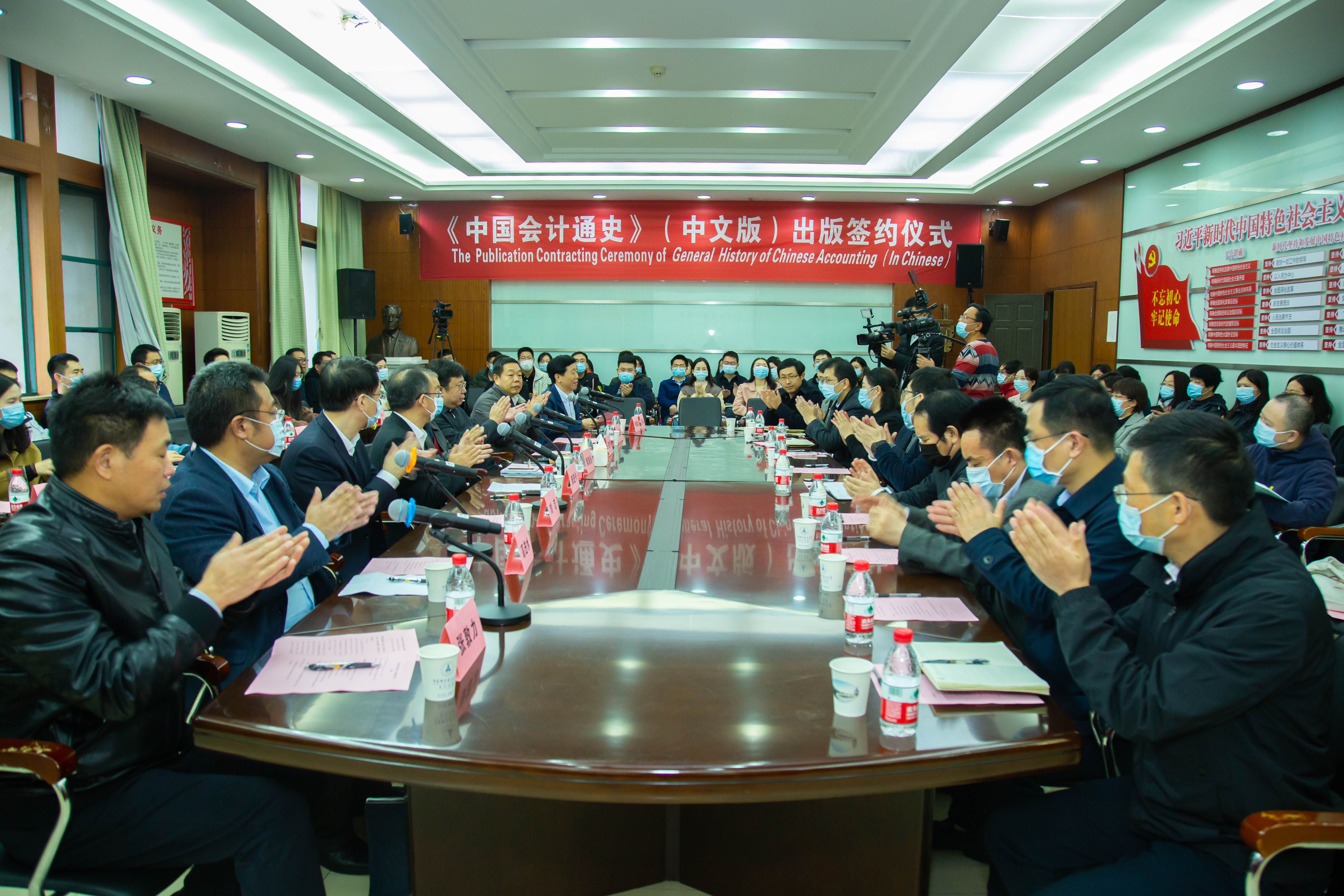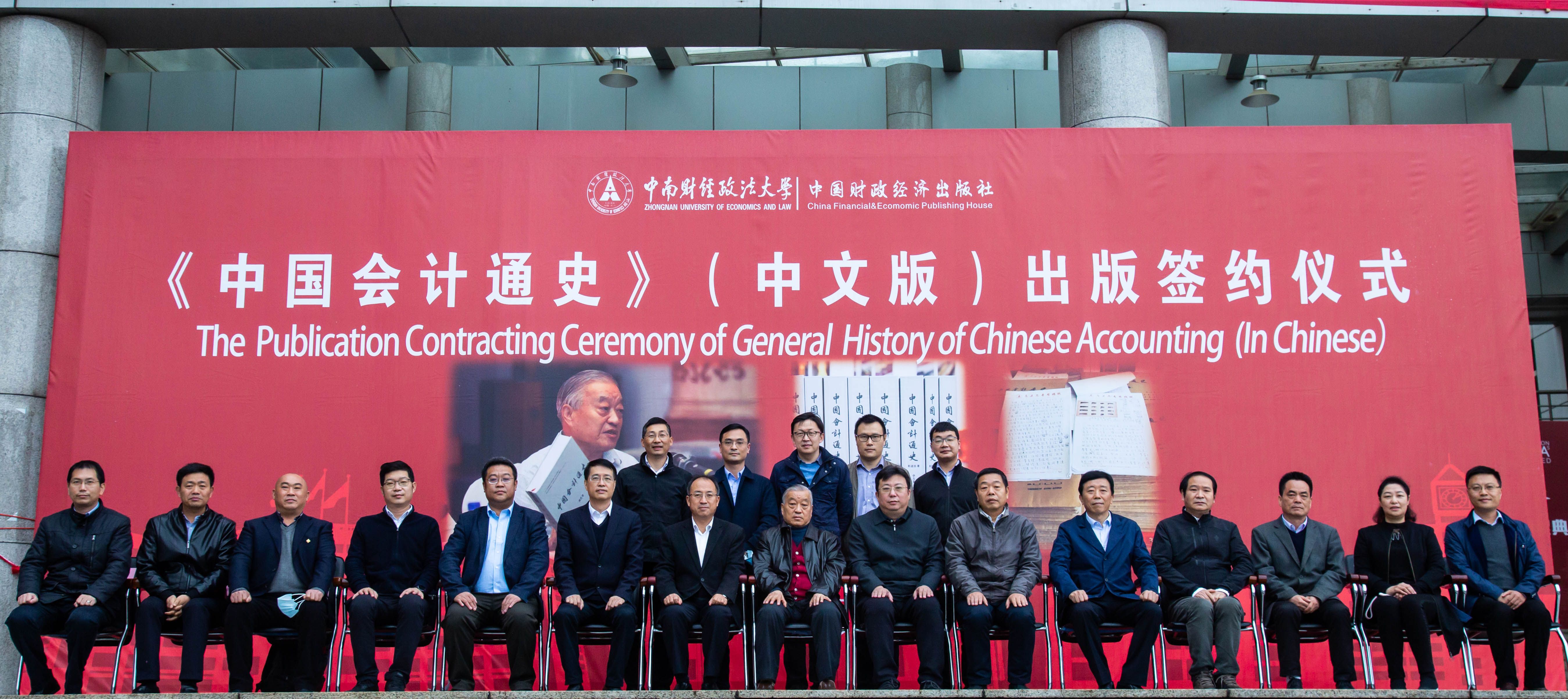 (通讯员 徐会超 冉明东 胡桂锬 张颖 严丽娜 赵侃)2020年11月21日,《中国会计通史》出版签约仪式在中南财经政法大学南湖校区文泉楼南401会议室隆重举行。我校文澜资深教授、世界著名会计学家郭道扬教授,财政部监督评价局局长郜进兴,财政部湖北监管局局长郭方明,中国财经出版传媒集团党委书记、董事长刘志,我校党委书记栾永玉教授,中国财政经济出版社副总编辑高进水等出席,我校副校长申祖武教授主持仪式。