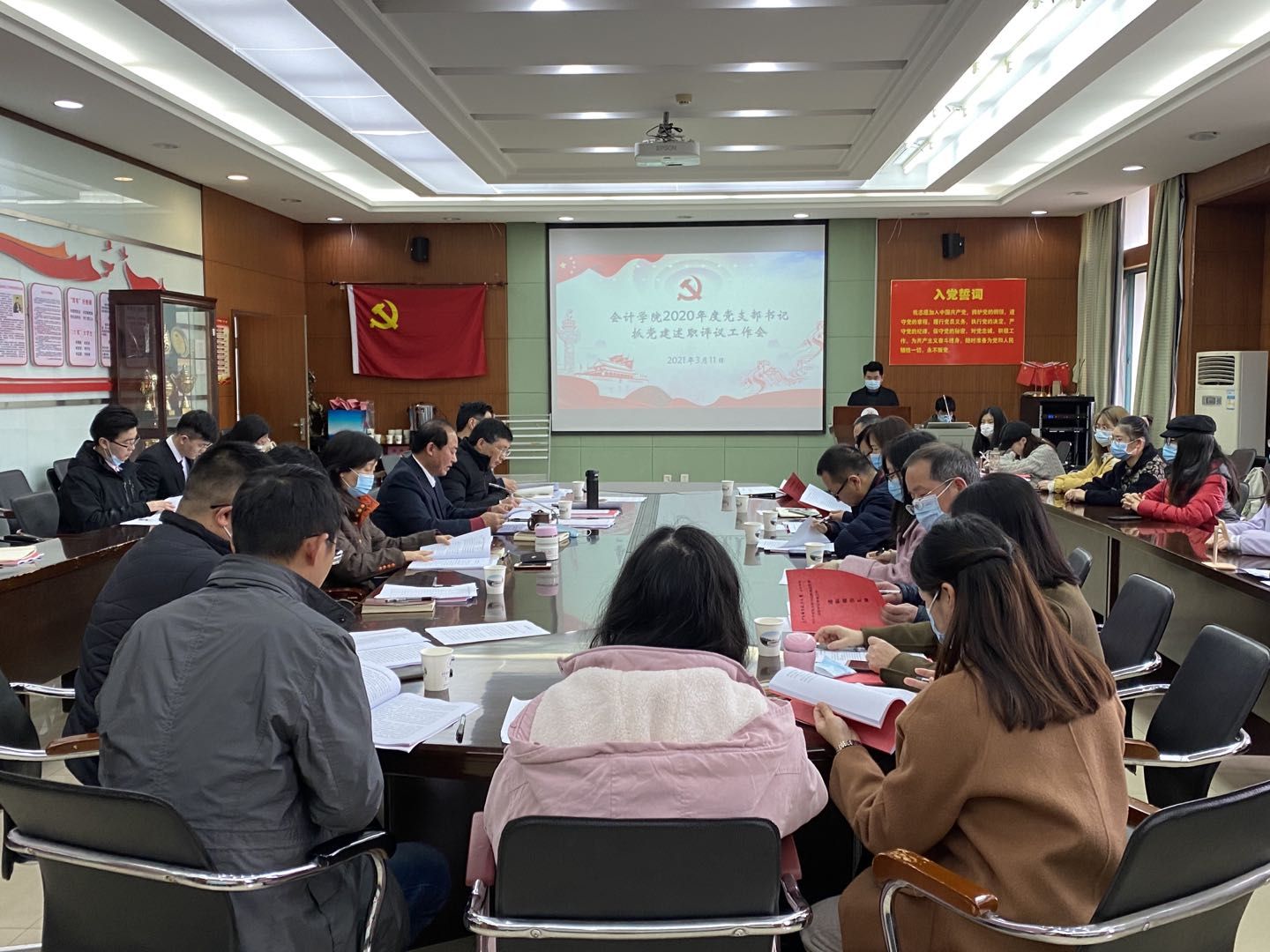 (通讯员 畅雅莉) 为贯彻落实中组部印发的《党委(党组)书记抓基层党建工作述职评议考核办法(试行)》精神,3月11日,会计学院2020年度党支部书记抓基层党建述职评议考核工作会议在文泉楼南401会议室召开。会计学院全体院领导、组织员、党政办主任、党务秘书和全体党支部书记参会,会议由院党委书记殷修林主持。