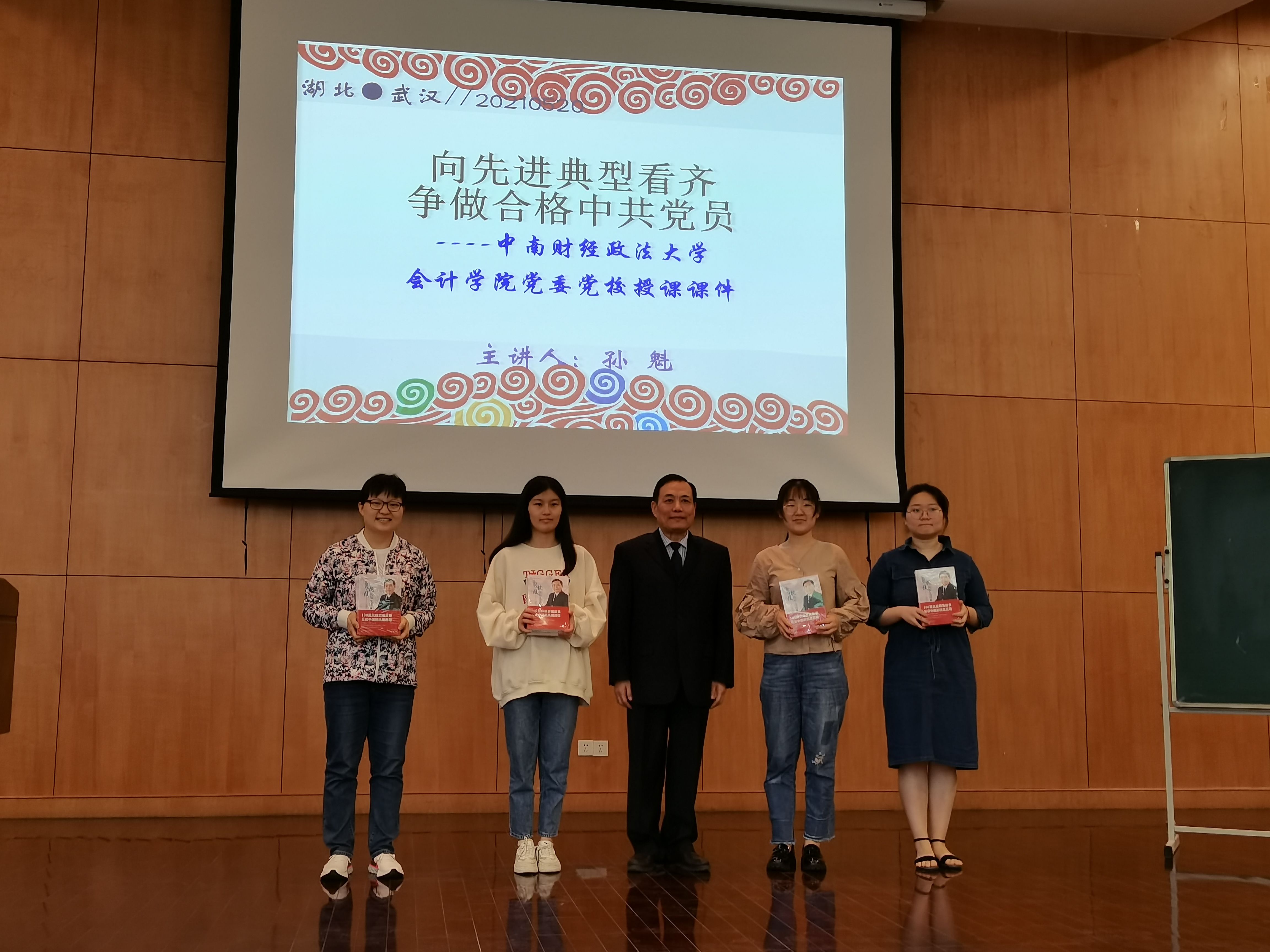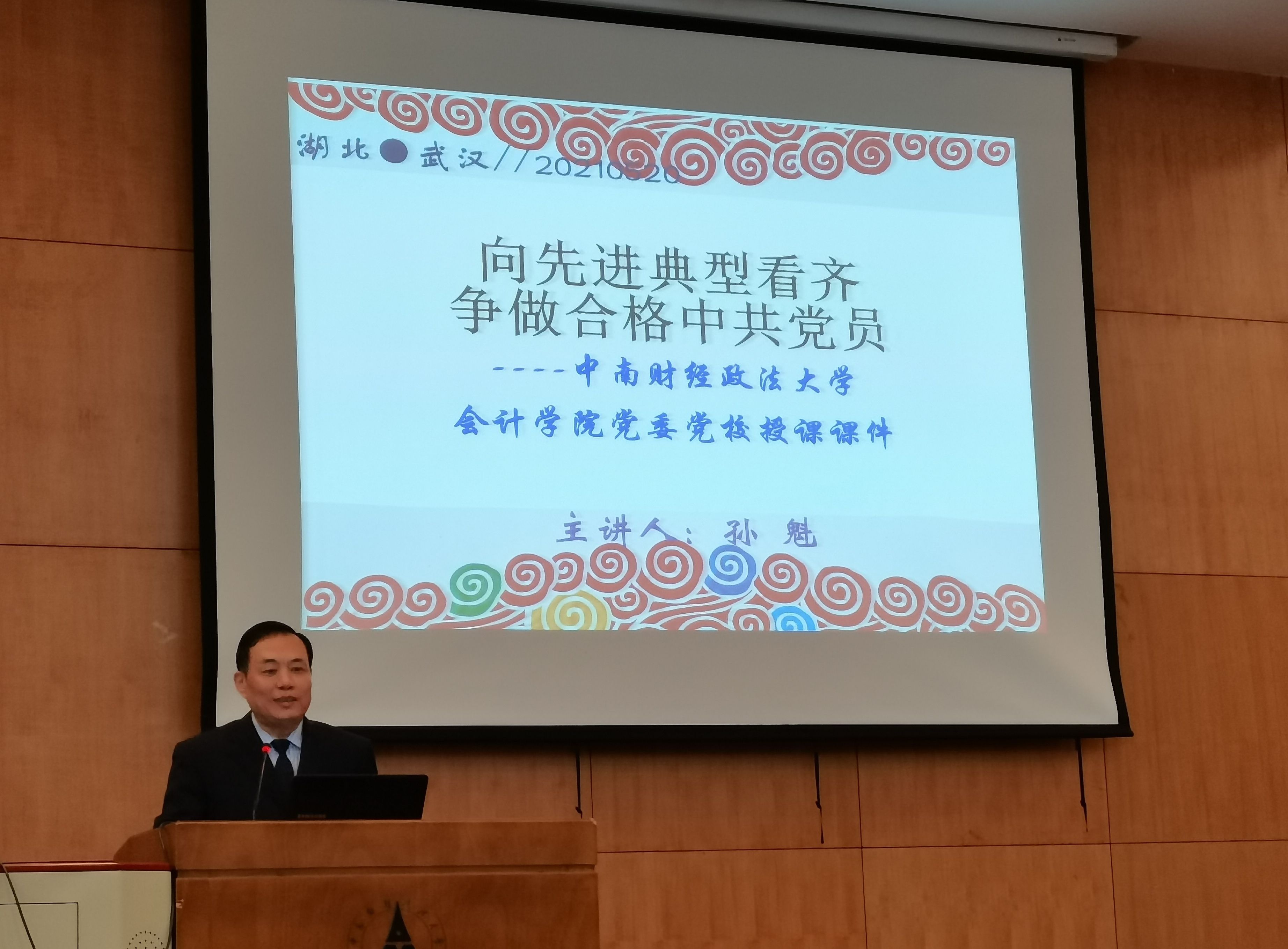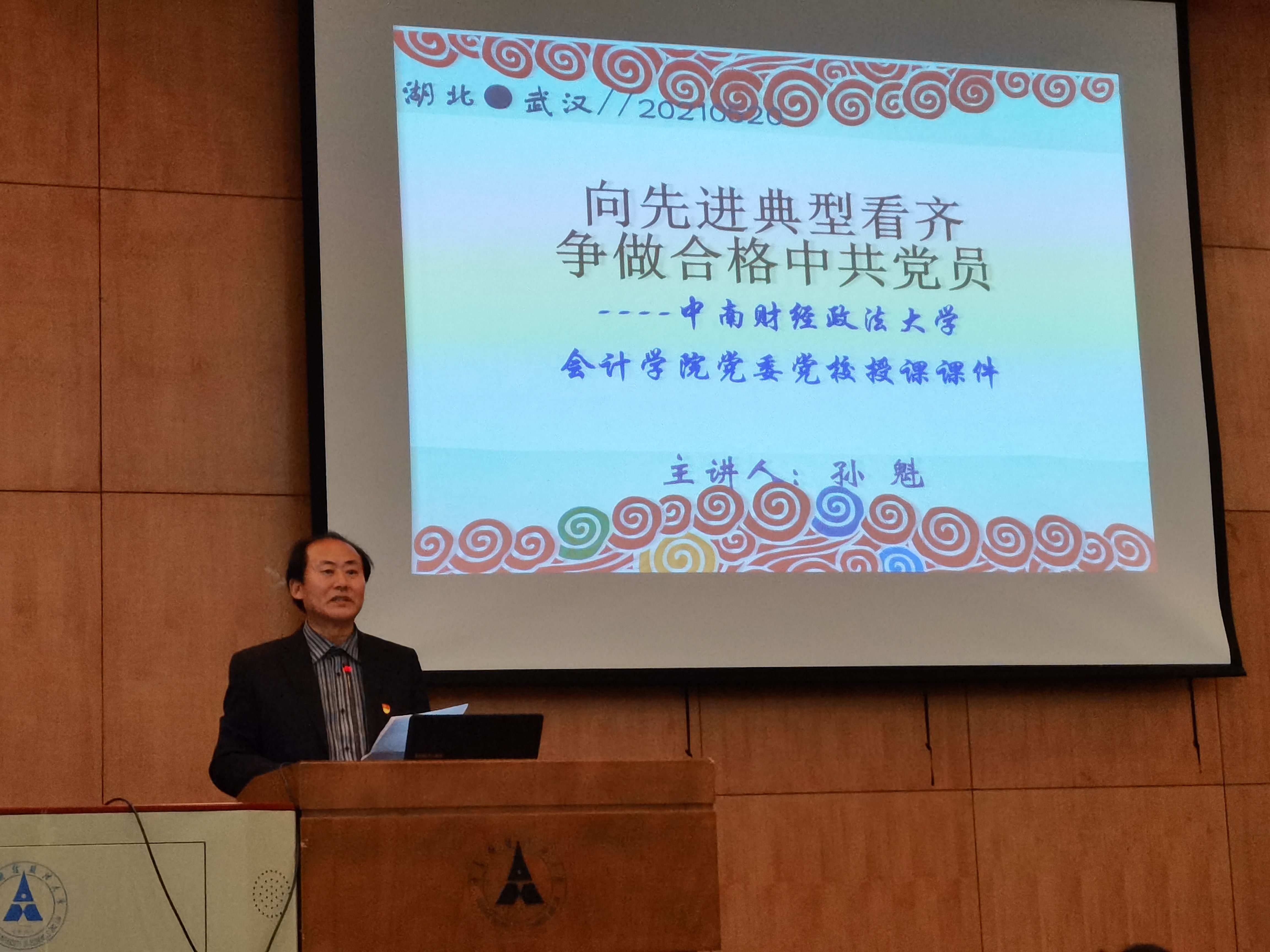 (通讯员 徐筱妍 畅雅莉) 2021年5月20日下午,会计学院党委党校2021年上半年入党积极分子、发展对象和预备党员培训班第三次党课在文泰321举行。此次党课以“向先进典型看齐,争做合格中共党员”为主题,邀请武警总部原军事(政策)研究室主任、甘肃省总队原副司令员孙魁主讲。湖北省文化产业商会秘书长劳春建,执行会长陈帮勇,副会长熊伟,会员部部长王晓君,外联部部长马阳,武汉艾特牛文化科技有限公司总经理陈萌奇等出席会议。本次党课由会计学院党委书记、党校校长殷修林主持。