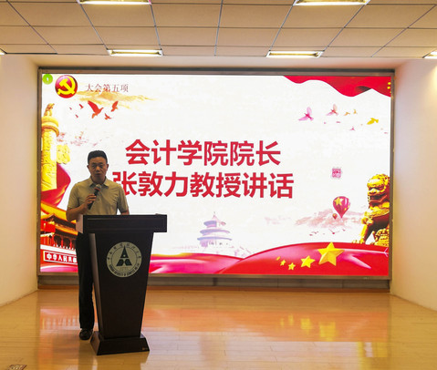 大会第五项,会计学院院长张敦力教授讲话。他鼓励同学们坚定理想信念,担当复兴大任;提升综合素质,砥砺奋斗人生;锤炼品德修为,厚植济世情怀。要高擎五四精神火炬,带着满腔的激情与热血投身到社会主义现代化建设的事业中,将自身融入到国家和民族的奋斗大潮中。