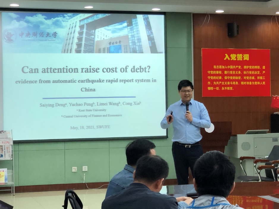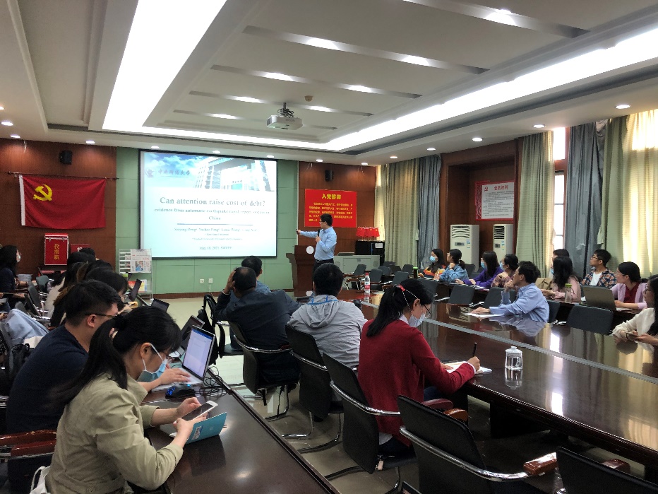 2021年5月20日,“中南·会计Seminar”第97期在文泉楼南401成功举行。中央财经大学彭俞超副教授应邀为我院师生作了题为《Can Attention Raise Cost of Debt? Evidence from Automatic Earthquake Rapid Report System in China》的学术报告。