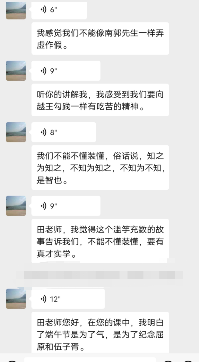 在课堂的最后,箭坝小学五年级学生通过微信语音向田培霖同志传达了课程感悟,学生集体向云课堂老师表达了感谢并赠予了端午节祝福。本次五年级课外阅读云课堂为孩子们送去了传统文化的知识,也给研究生党员在志愿实践中提供了新的启发。志愿团五年级组将在接下来的活动中,继续帮助孩子们培养时间观念、学习和生活习惯,创新活动内容,在“一小时”中脚踏实地做好“扶智薪火随”。 (文/田培霖 彭剑巍 图/赵希富)