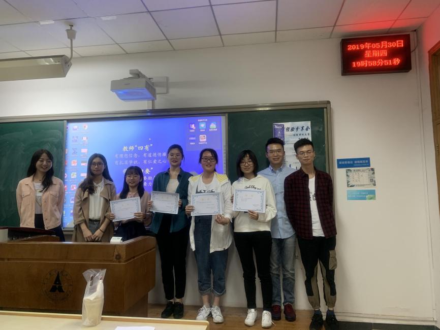 图3经验交流会上王嘉鑫老师为“学业优秀”获奖同学颁奖