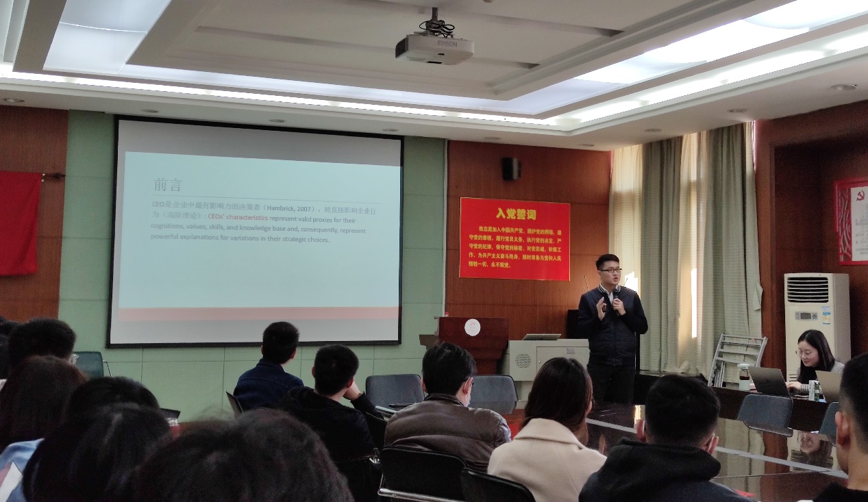 2021年11月10日,“中南·会计Seminar”第106期在文泉楼南401成功举行。华中科技大学王海江副教授应邀为我院师生作了题为《达则兼济天下:CEO职场晋升与社会责任行为研究》的学术报告。