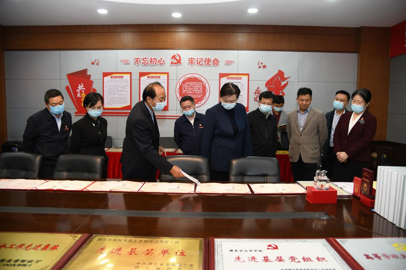 2021年11月,湖北省委常委、政法委书记、湖北省委教育工作领导小组组长王艳玲来院调研考察党建工作情况,高度评价学院作为首批全国党建工作标杆院系取得的突出成绩。