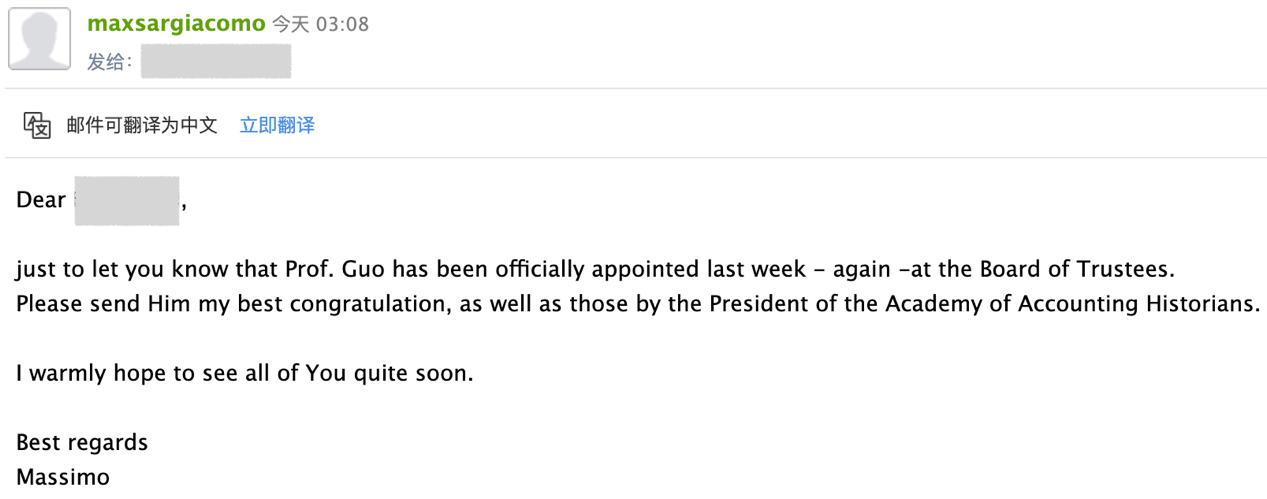 郭道扬教授第四届连任世界会计史学家大会学会理事。