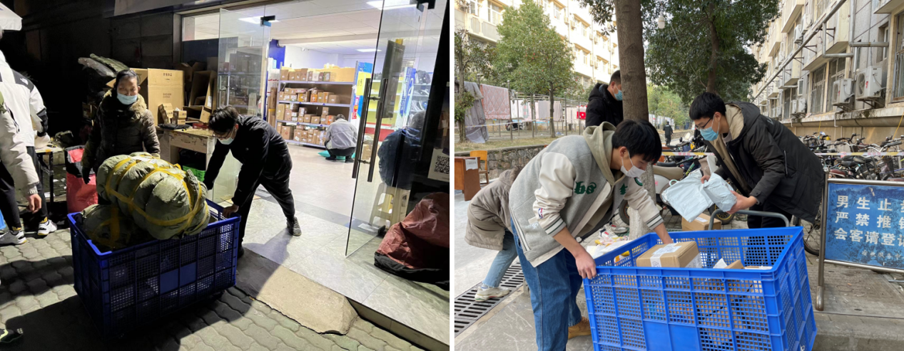 隔离期间,取快递也是一个难题,男生党员们纷纷化身“快递小哥”,在微信群中发起接龙,收集代取快递信息,分批到滨湖、环湖、中区邮政等多个快递点,每一趟都是满载而归,虽然很累,但是每个人脸上都洋溢着“丰收”的喜悦。据统计,三天时间里,已代取快递450余件。
