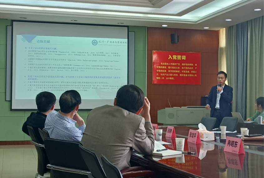 在交流提问环节,陈博士与李四海、冉明东、杨国超、邓伟、黄勇、何捷等老师就加强市场竞争导致商业信用增加的理论分析、区分在位企业与客户关系的异质性、细化同行业的度量方法等问题进行了深入的讨论与交流。随后,李四海教授与陈世来博士交流了当前的研究进展以及未来的研究规划。最后,李栋栋老师对本次报告做了总结。至此,“中南·会计Seminar”第112期圆满落幕。(通讯员:乔婷钰)