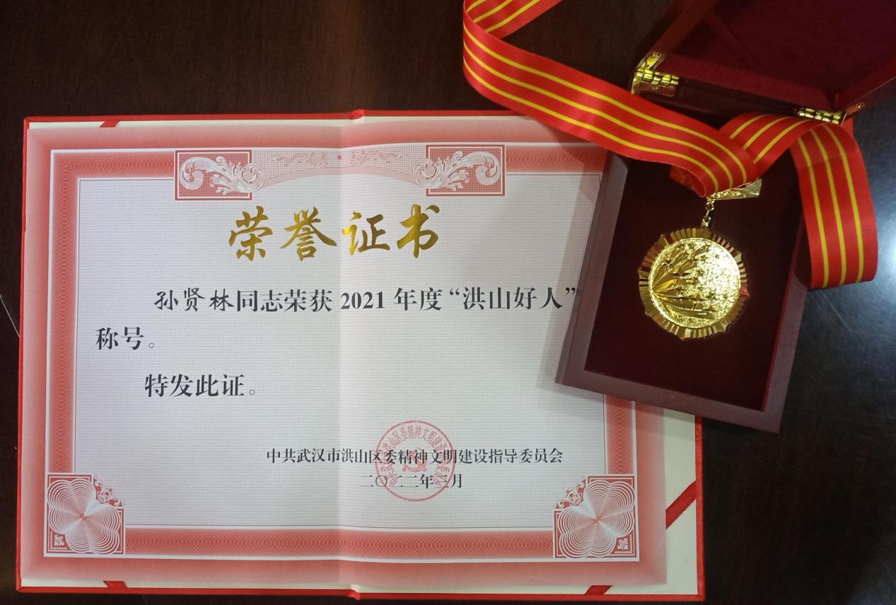 (通讯员 畅雅莉)近日,中共武汉市洪山区委精神文明建设指导委员会为我院孙贤林教授颁发了2021年度“洪山好人”荣誉证书,孙贤林教授荣获“助人为乐好人”荣誉称号。