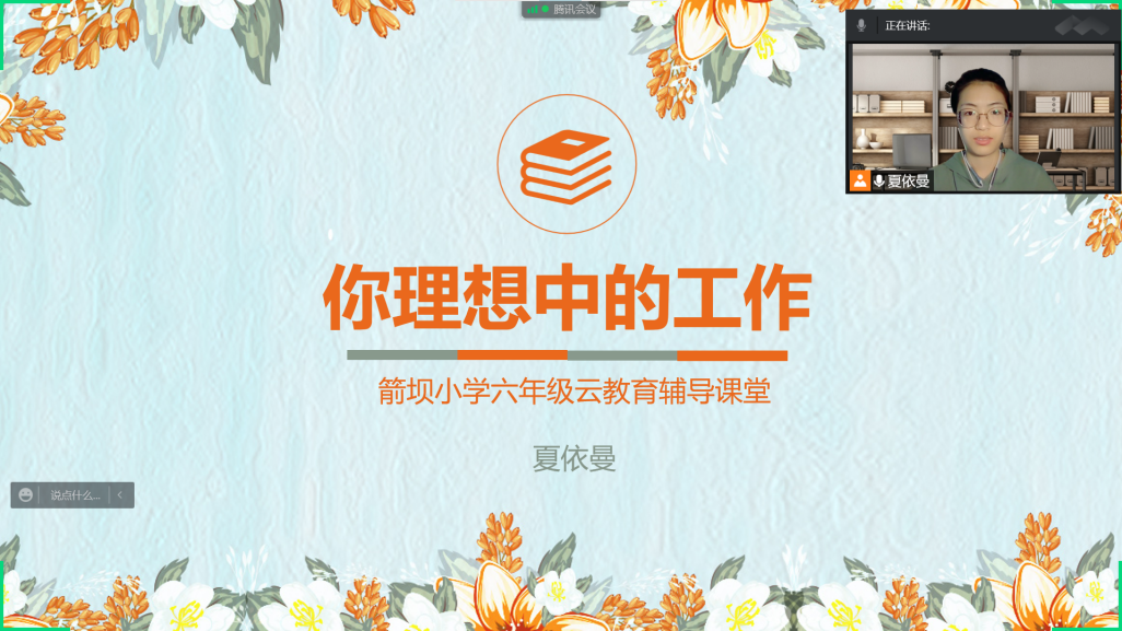 (通讯员 夏依曼)2022年5月10日下午,中南财经政法大学会计学院学生党员志愿服务团成员为云南省盐津县箭坝小学六年级师生开展名为“你理想中的职业”的“云课堂”教学活动,旨在让同学们对职业有初步的认识,了解社会中出现的一些新兴职业,并在学习中挖掘自己的职业兴趣。此次课程由会计学院学生党员志愿服务团成员夏依曼主讲,箭坝小学校长李勇、六年级教师吴老师及六年级全体学生参加了本次活动。