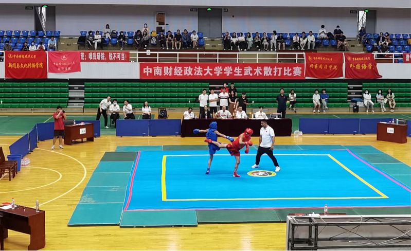 5月28日至5月29日,2022年中南财经政法大学武术散打比赛在我校艺体中心顺利举行。比赛中,会计学院学子敢打敢拼,积极进攻,用灵活的脚步和顽强的意志展现出我院学子良好的精神风貌。每一次出拳,都凝练了选手们训练技术的艰辛;每一次闪避,都汇聚了选手们磨炼意志的汗水。