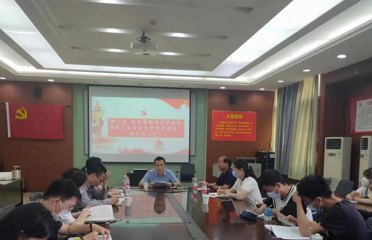 本次主题教育采用线上线下相结合的方式进行。院党委书记殷修林、院党委副书记胡桂锬主讲,院党政办主任姚健主持。全体毕业年级党支部书记、党务秘书、毕业生党员参加活动。