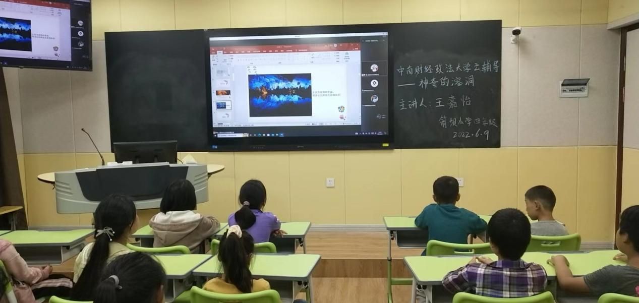 (通讯员 刘舜宇)2022年6月9日下午,会计学院学生党员志愿服务团成员为云南省盐津县箭坝小学四年级师生开展了一次名为“神奇的溶洞”的“云课堂”教学活动,旨在帮助学生认识溶洞,了解更多地理知识,激发同学们对世界的探索欲。此次课程由党员志愿服务团四年级组成员王嘉怡主讲,箭坝小学校长李勇、四年级班主任万玉凯老师及四年级全体学生参加了本次活动。