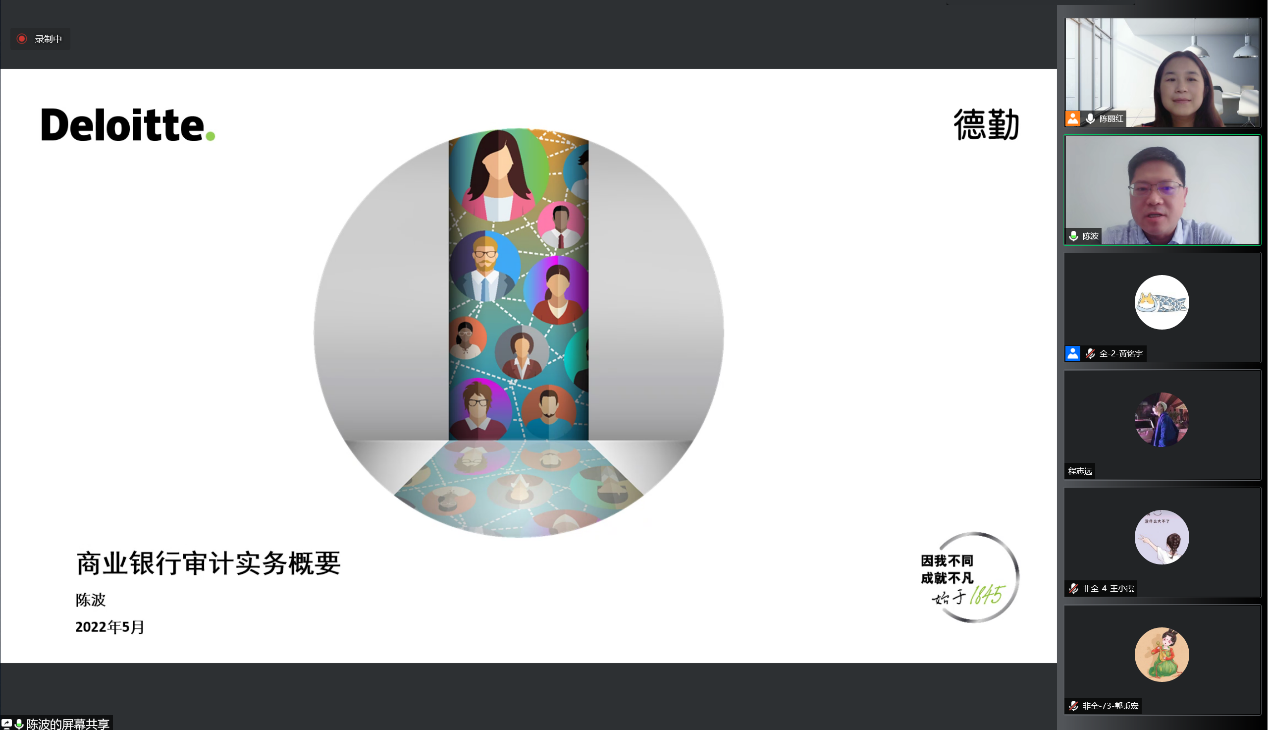 2022年6月11日,德勤中国金融服务业审计及鉴证合伙人、德勤中国公司治理中心合伙人、武汉大学会计系博士陈波先生应我院副院长陈丽红教授邀请,为我院师生带来了“商业银行审计实务概要”的专题讲座。陈波先生结合商业银行审计实务经验,全面刻画了我国商业银行的业务类型、报表类型、审计方法论以及具体的审计要点,为我院师生带来一场有关“商业银行审计”的精彩讲座。