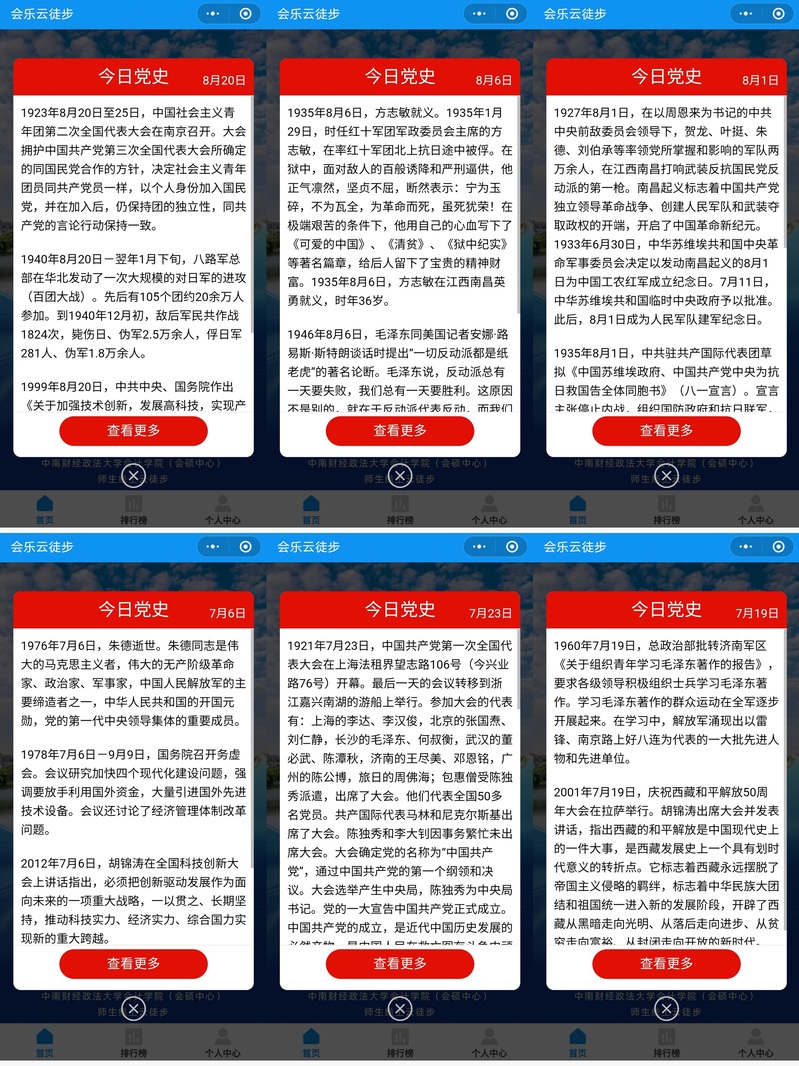 活动自7月10日启动,邀请全院师生采用“云端打卡+线下徒步”相结合的形式响应习近平总书记建设“健康中国”、“体育强国”的伟大号召,打造学院全民健身、喜迎二十大的浓厚氛围。值得一提的是,每天兑换步数打开小程序时,首页都会出现“今日党史”小知识,让师生在运动的同时认真学习党史,传承伟大精神。