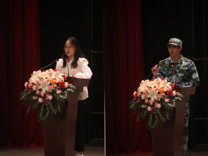 接下来是老生代表岳馨语发言。岳馨语师姐用“选择”来概括自己的大学生活,号召同学们重视每一个机遇,将个人理想融入家国情怀,让青春力量融入家国担当。