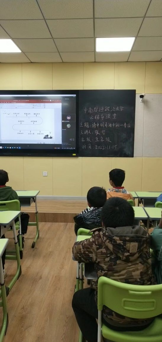 (通讯员 刘薇)2022年11月15日下午,会计学院学生党员志愿服务团成员通过腾讯会议平台为云南省盐津县箭坝小学五年级学生开展以“诗中明月酒中仙——李白“为主题的“云课堂”教学活动,旨在帮助学生了解唐朝伟大的浪漫主义诗人李白的生平经历和代表作品,为学生今后学习和理解李白诗词的思想感情和语言风格奠定基础。此次课程由张哲同学主讲,箭坝小学五年级班主任万玉凯老师及五年级全体同学参加了本次课堂活动。
