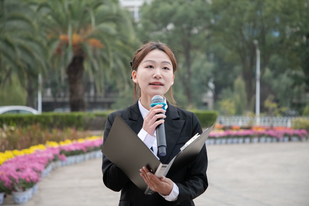之后,会计学院2020、2021级本科生郭宇航、秦文婷、孔维新带来主题朗诵《赞美你,我的祖国》。他们用慷慨激昂的话语带领同学们领略了祖国的安泰祥和,深切地歌颂与赞美了祖国的富庶与强大。