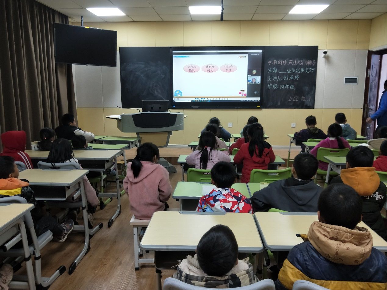 (通讯员 刘亚婷)2022年12月1日下午,中南财经政法大学会计学院学生党员志愿服务团成员为云南省盐津县箭坝小学四年级学生开展名为 “____让生活更美好”习作课的“云课堂”教学活动,旨在通过写作课引导学生们对生活中的美好多加留意,以培养学生们观察生活和热爱生活的能力。此次课程由刘亚婷同志主讲,箭坝小学四年级全体学生参加了本次活动。