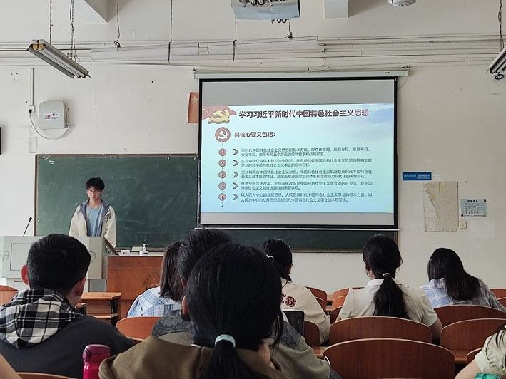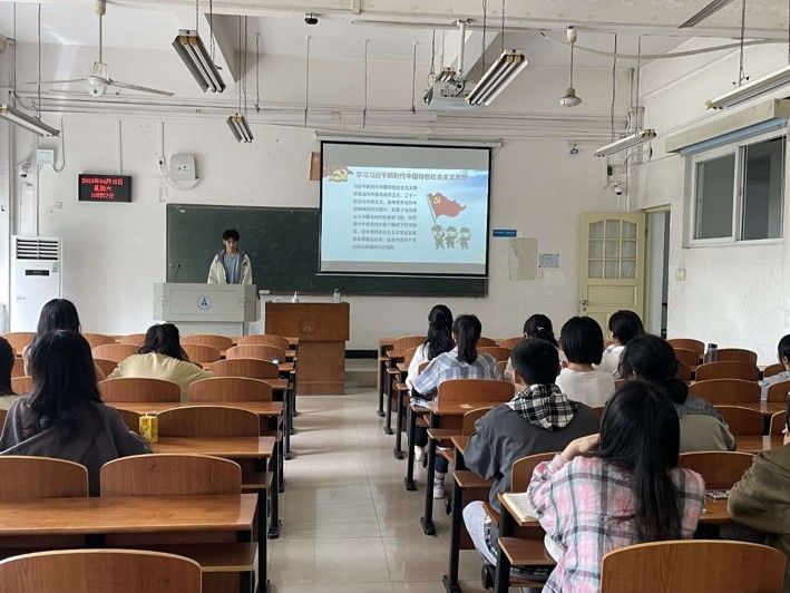 第一部分——学思想。团支书王朝清带领团员青年们学习习近平新时代中国特色社会主义思想的五个核心要义,让团员青年们认识到了进行党的思想教育的重要性。同时团支部成员围绕“学思想、强党性、建新功”开展了读书交流活动,以《毛泽东选集》、《习近平著作选读》等经典著作为主要阅读内容。阅读后团员展开小组讨论,进行思想交流和碰撞,加强理论学习。根据团员在读书活动中的交流情况和问题,团支书就相关的学科知识和思想进行讲解和指导,为团员提供指导和帮助。