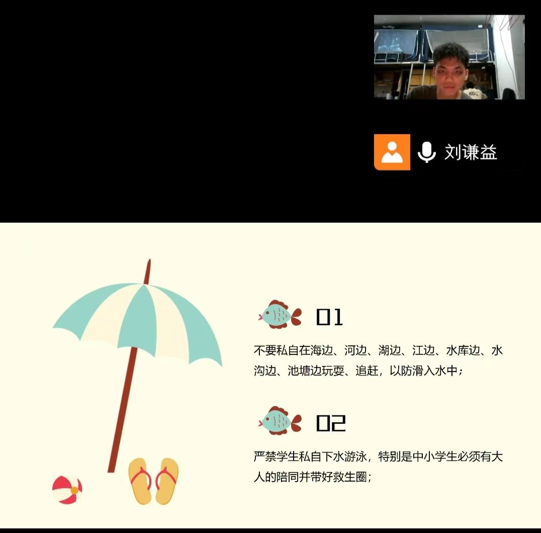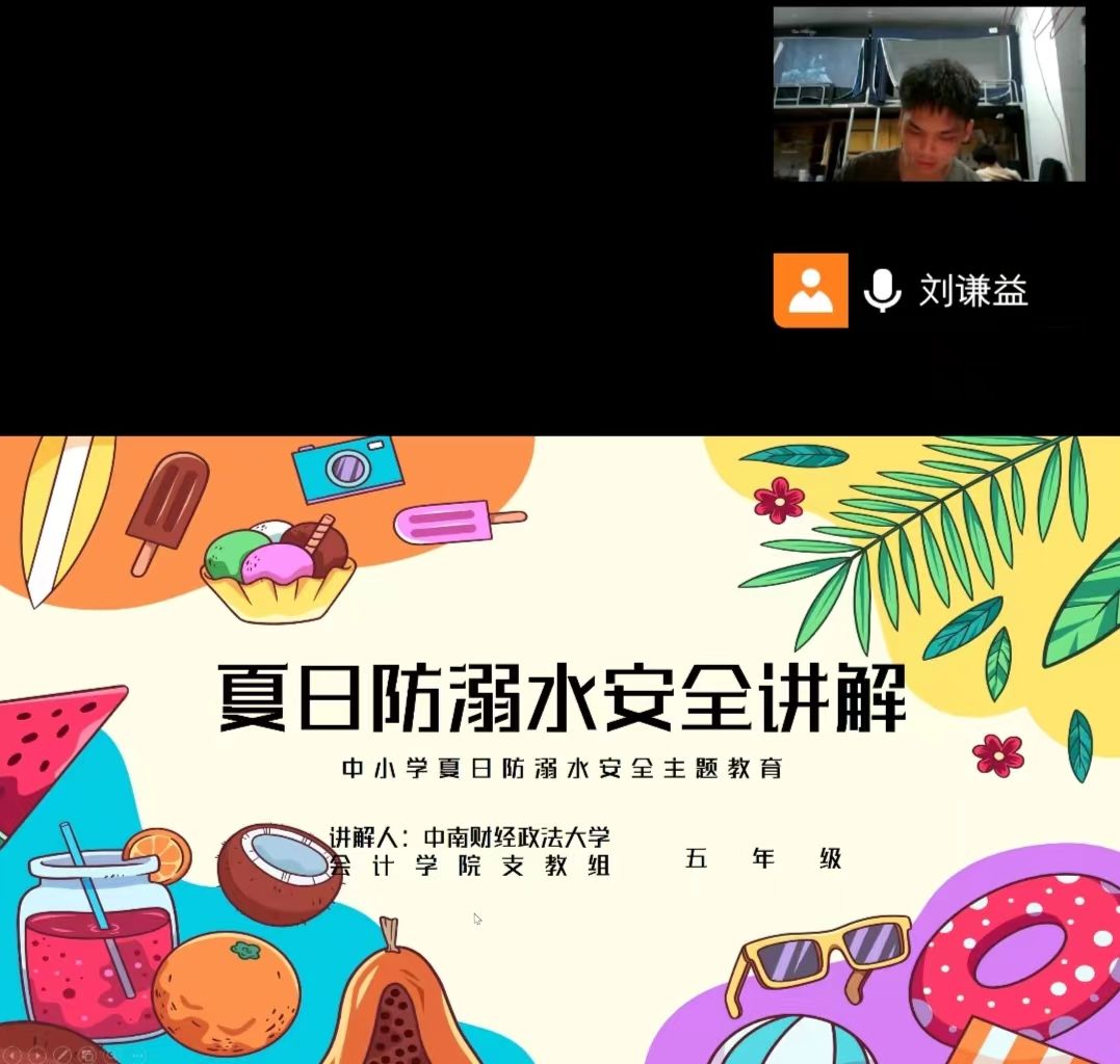(通讯员 刘雅雯)4月13日下午会计学院学生志愿服务团成员为云南省盐津县箭坝小学五年级师生开展了以“夏日防溺水”为主题的“云课堂”教学活动。此次课程通过腾讯会议,由会计学院学生刘谦益老师主讲。课程面向五年级全体同学,旨在为了考虑学生夏日河道玩耍安全问题,使得人人对如何自救及他救有基本的了解与认识,帮助同学们增加夏日防溺水的知识。接下来,刘谦益老师为贯彻这一理念从溺水预防、溺水自救等几个方面开展课堂讲解。