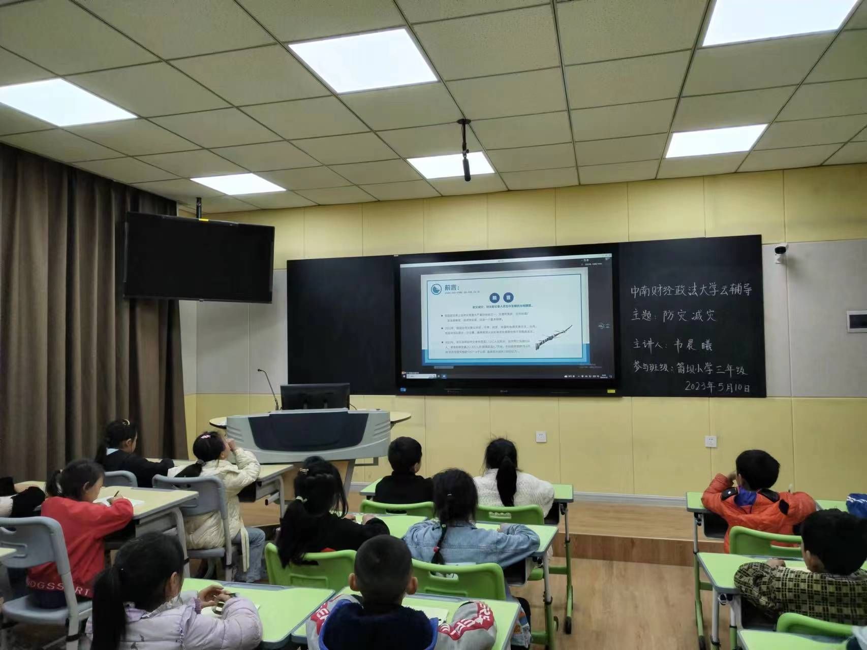 (通讯员 陈欣儿)2023年5月10日星期三下午,通过腾讯会议平台,会计学院学生党员志愿服务团成员为云南省箭坝小学三年级师生开展以“防灾减灾”为主题的“云课堂”教学活动,旨在通过生动的课堂教学活动深化同学们对防灾减灾、抗灾救灾的认识,进而培养同学们的安全防护意识,促进同学们科学素质提高。此次课程由韦晨曦主讲,箭坝小学三年级全体同学参加了本次云课堂活动。