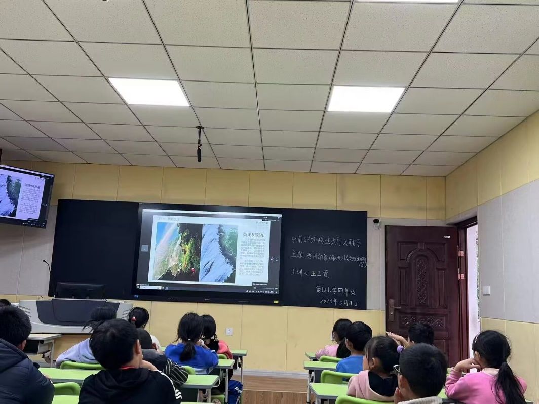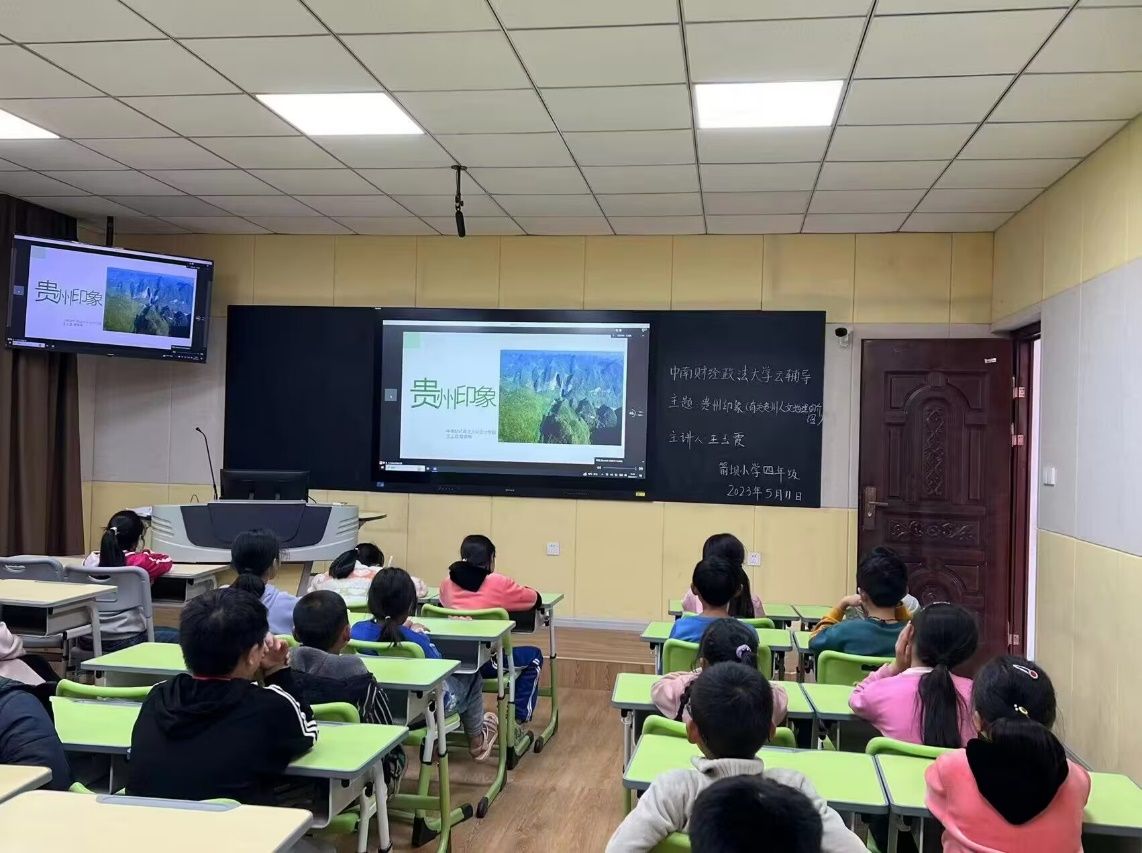 2023年5月11日,中南财经政法大学会计学院22级学生王玉霞以及章雪梅以线上的方式通过腾讯会议向来自云南省四年级的小朋友们开展了课堂教学。此次教学主题为《贵州印象》,希望通过该次的教学,提高同学们对邻省贵州的了解,感受来自不同地区的民族风情,灿烂文化。此次教学共有三个部分,分别为旅游景点,美食特产,以及地域文化。
