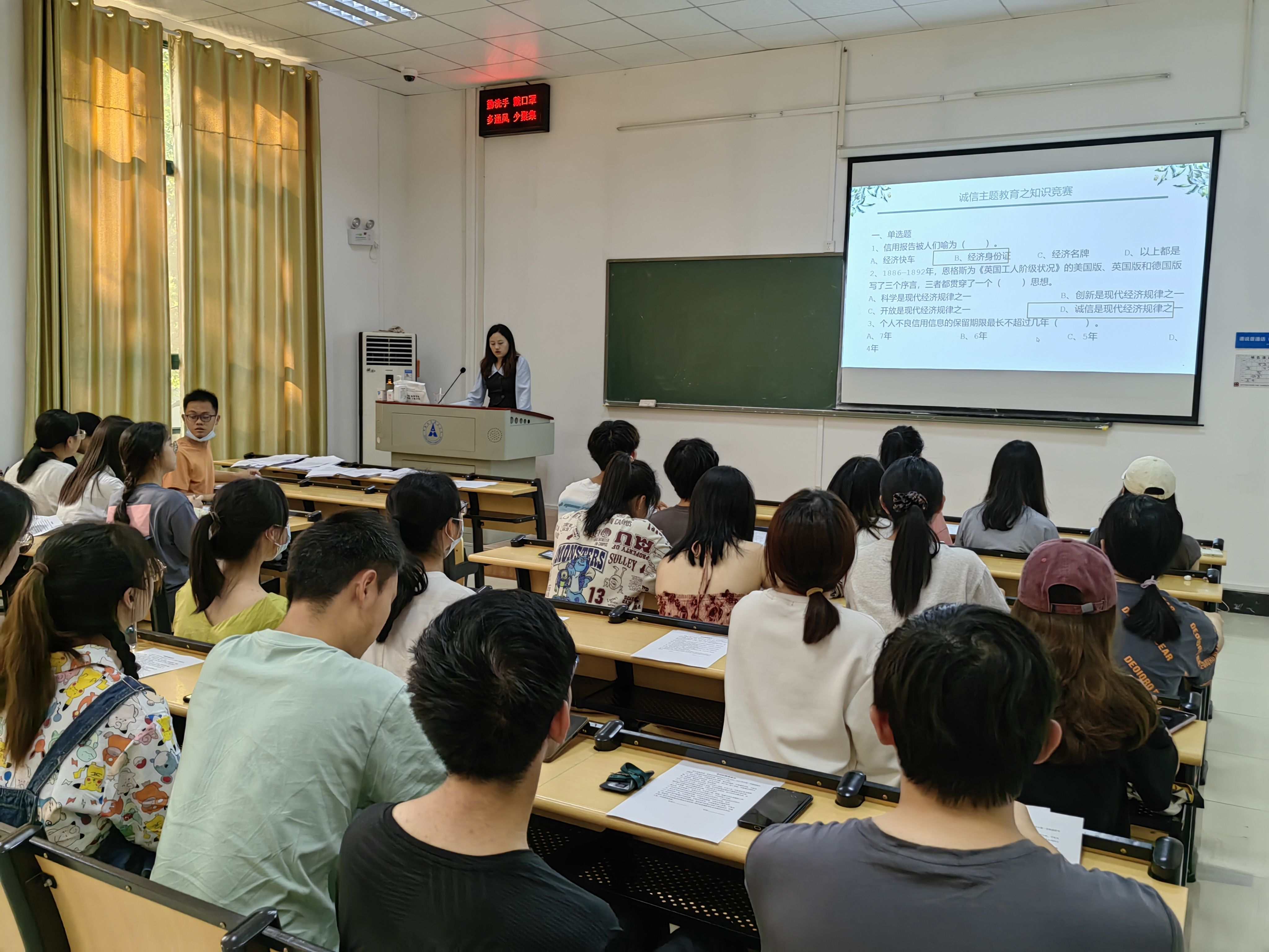 “诚信者,天下之结也。”作为新时代的大学生,要以诚信为本,诚信做人。在诚信教育部分,黎老师向同学们提出四点要求。一是日常生活中为人处世要遵守诚信准则。二是参与任何国家或地方教育资助政策者,诚信还款。三是勤俭节约,远离校园贷,不超前消费,珍惜征信记录。四是不盲目攀比,不贪图享乐。此外,班会还开展了诚信主题知识竞赛,各班同学踊跃发言,加深了对诚信的认识和理解。