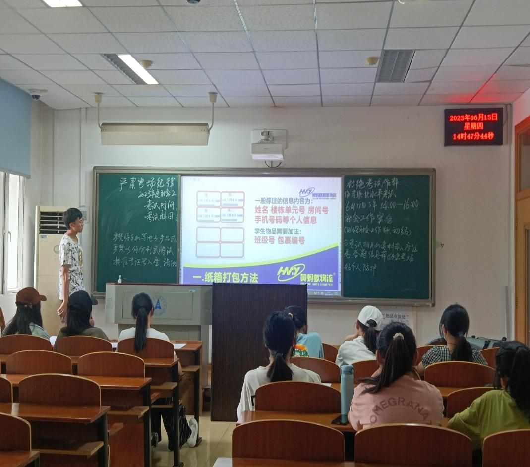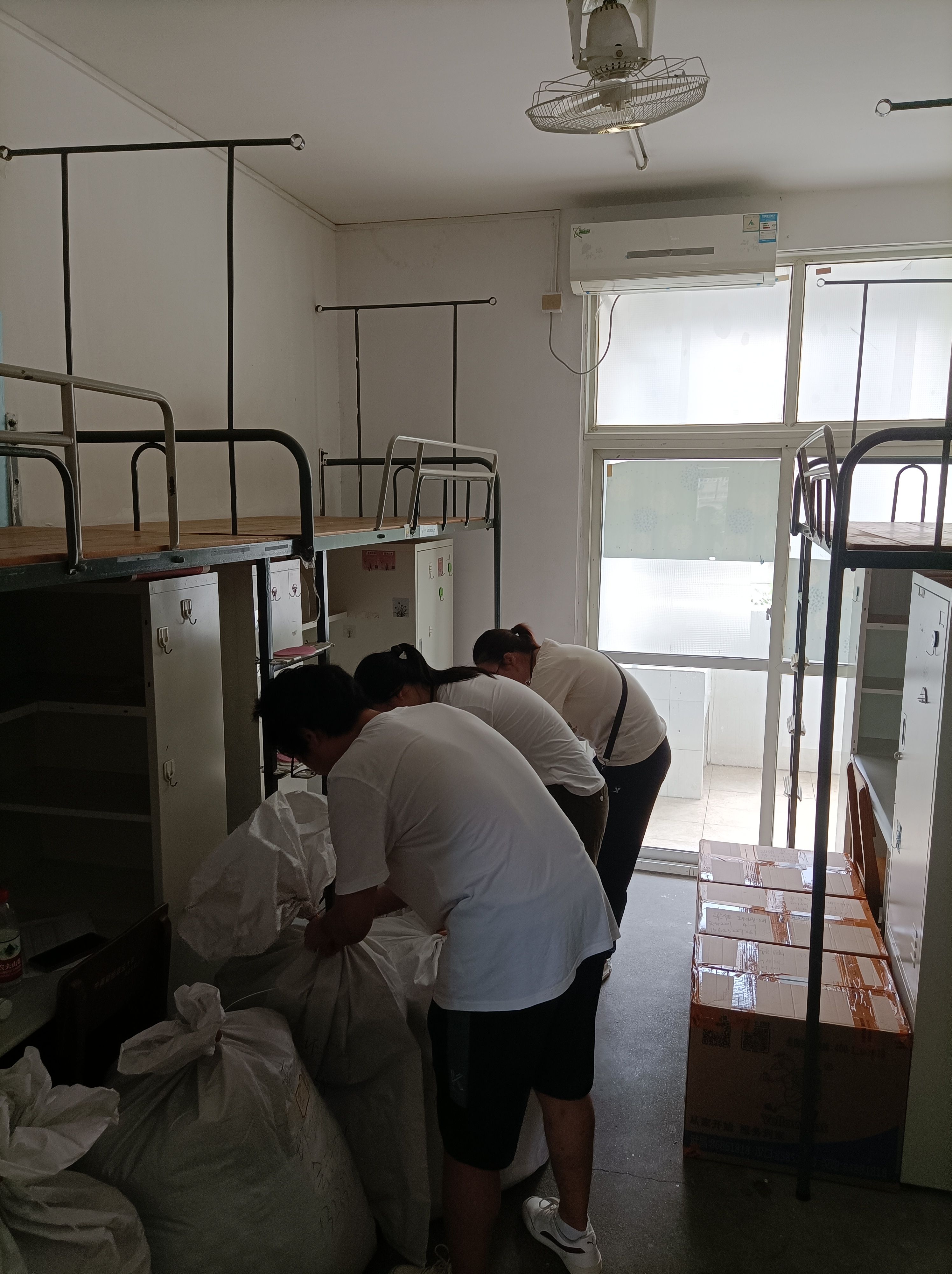 6月28日,搬家工作进入攻坚期。每位同学将个人物品按照种类进行划分,用编织袋或者纸箱进行打包,部分易碎品或是不方便运输的物品,由学院专门安排搬运,辅导员黎玥全程下沉一线,现身示范、演示物资摆放和编织袋打包等各项细节,各班班干部、年级团总支学生会干部逐个寝室检查并指导同学们行李打包,及时发现和解决各类问题。